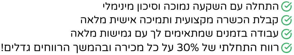 הצטרפות כשותף עסקי תיתן הנחה של 30% בהתחלה ואח"כ יותר!